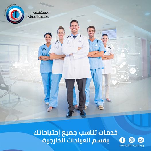 مرحبا بكم في مستشفى حسبو الدولي (HIH) ، حيث نعتني بك لنمنحك حياة صحية و سعيدة. تدور مستشفي حسبو الدولي حول تقديم خدمات رعاية عالية الجودة لمرضاها. نهدف إلى تلبية احتياجات جميع مرضانا بميزات رعاية مناسبة مصممة خصيصًا لهم. سواء كانت جراحة طارئة أو عامة ، فإن خبرائنا متاحون على مدار الساعة طوال أيام الأسبوع لخدمتك. لا تتردد في الاتصال بنا في أي وقت واستشارة خبرائنا للحصول على النصائح. يمكن لأطبائنا المهرة والمهنيين ذوي الخبرة التعامل مع جميع أنواع القضايا المتعلقة بصحتك الجسدية. عيادة التحكم بالالم قسم أمراض الأنف والأذن والحنجرة قسم أمراض الجهاز الهضمي قسم أمراض الرئة قسم أمراض الروماتيزم قسم أمراض الكلي قسم أمراض المسالك البولية قسم أمراض النساء والتوليد قسم الأمراض الجلدية قسم الأمراض العصبية قسم التغذية قسم الجراحة التجميلية قسم الجراحة العامة قسم الطوارئ قسم العظام قسم الغدد الصماء قسم القلب و الأوعية الدموية قسم جراحة الأوعية الدموية قسم طب الأسنان قسم طب الأطفال قسم طب العيون وحدة الرعاية المركزة لحديثي الولادة