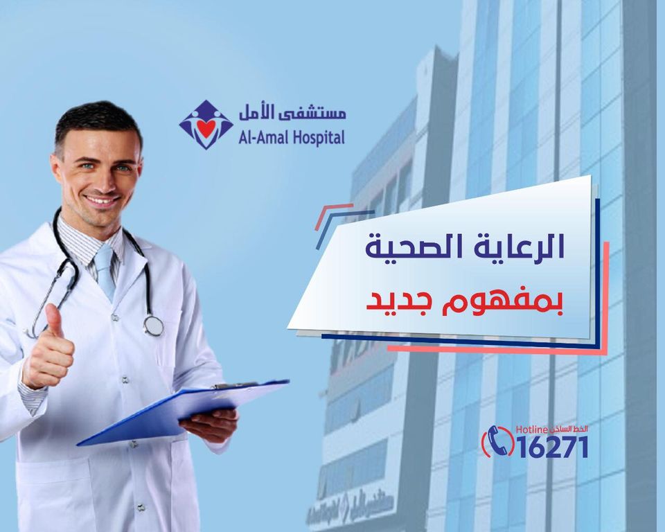 مستشفى الأمل يضم مستشفى الأمل 140 سرير و يعمل بها أكثر من 100 طبيب ويضــــم 25 إدارة طبيـــة وستــة مراكــز للتميـــز و تعمل المستشفى على مدار ال 24 ساعة يومياً على مدار العام وتقدم مستشفى الأمل خدمات التشخيص والعلاج من خلال 25 عيادة خارجية تضم جميع التخصصات الطبية، وتلتزم مستشفى الأمل من خلال تلك العيادات بتوفير العناية الصحية العالية الجودة في جو من الأمان والرعاية والسرية التامة والتي تتوافق مع المعايير العالمية وتوقعات المجتمعين العربي والمصري كما أن متوسط المرضى الذين يتم فحصهم كل يوم 200 مريض في جميع أقسام المستشفى بما في ذلك المترددين على العيادات الخارجية ، يتم تنويم أكثر من 1000 مريض سنوياً و 2500 مريض خارجي يتم فحصهم كل سنة في العيادات الخارجية المتخصصة الغرف والاجنحة يمكن لمرضانا أن يختاروا بين الغرف المزدوجة، المفردة , الأجنحة العادية أو الأجنحة الملكية كما ان جميع الغرف مكيفة ومجهزة بكل وسائل الراحة التامة للمريض، هذا وقد ازدادت الطاقة الكلية لما يقارب 140 سرير كل الغرف والأجنحة متصلة بمراكز التمريض مما يسمح لهم بمتابعة احتياجات المرضى كما تقوم إدارة المستشفى بمتابعة كل الخدمات المقدمة بالغرف (التنظيف والتعقيم والغسيل….إلخ) من أجل ضمان إستمرار الحفاظ على أفضل رعاية صحية ممكنة تقوم خدمة الغرف بتقديم طعام صحي متكامل مع اختيارات متعددة للإفطار والغداء والعشاء بالإضافة إلى الوجبات الخفيفة وإعداد جميع الأطعمة والمشروبات يتم تحت رعاية وإشراف صارم من أخصائيي التغذية في المستشفى