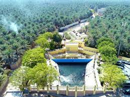نبع كبير يقدر دفقها بعشرين الف جالون في الدقيقة ماؤها حار وقد بلغت حرارة المياة التي قيست في أطراف بحيرتها 101 درجة فهرنهايت وبلغت 103 او 104 فهرنهايت في وسط البحيرة فوق فوهات العين ، يجري ماؤها إلى البساتين من خلال مجموعة جداول رئيسية كان عددها سبعه ومنها اخذت اسمها ولايوجد منها الان الا خمسة جداول
