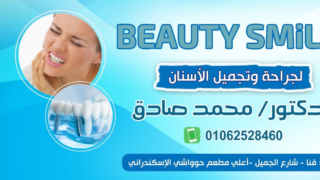 مركز بيوتي سمايل لتجميل الاسنان بقنا مركز بيوتي سمايل لجراحة وتجميل الأسنان في قنا أفضل مركز متخصص في زراعة الاسنان والتركيبات والحشوات التجميلية والتداخلات الجراحية في قنا مركز بيوتي سمايل لتجميل الاسنان بقنا مركز متخصص في زراعة الاسنان والتركيبات والحشوات التجميلية والتداخلات الجراحية الخدمات التي يقدمهامركز بيوتي سمايل لتجميل الاسنان بقنا • حشو العصب • حشو الليزر • حشو ابيض عادي • حشو البلاتيني • الخلع • طربوش ثابت بورسلين • طربوش ثابت معدن • تنضيف + تلميع • طقم كامل عادي • طقم كامل مرن • تبيض ليزر • إبتسامة هوليود • تقويم الأسنان • زراعة الأسنان • جراحة الاسنان العنوان : قنا - شارع الجميل أعلي مطعم وحواوشي الاسكندراني التليفون :01062528460 مواعيد العيادة يوميا