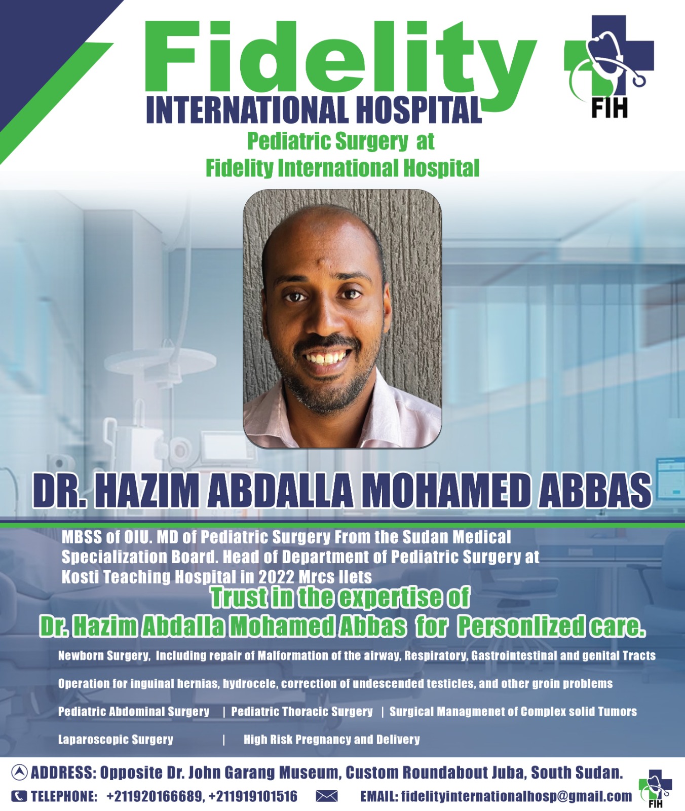 Hazim Abdalla Moha med Abass MBBS, specialist of Pediatric surgery MD on March 2023 of Sudan Medical Specialization Board. I am dedicated doctor with aim of utilizing my potentials, knowledge and clinical skills to achieve excellence and to be part of multidisciplinary health care team in pediatric surgery. Courses and workshops Research methodology workshop held in 2017 at Maharat in Sudan. The severe Trauma instruction course held in continuous professional development center by Sudan association of surgeons- January 2018. Basic surgical skills course held in continuous professional development center by Sudan association of surgeon- Mach 2018. Neonatal surgery workshop by SMSB and Sudanese association of pediatric surgery 2021. IELETS holder at 2019, overall band score 6.5.